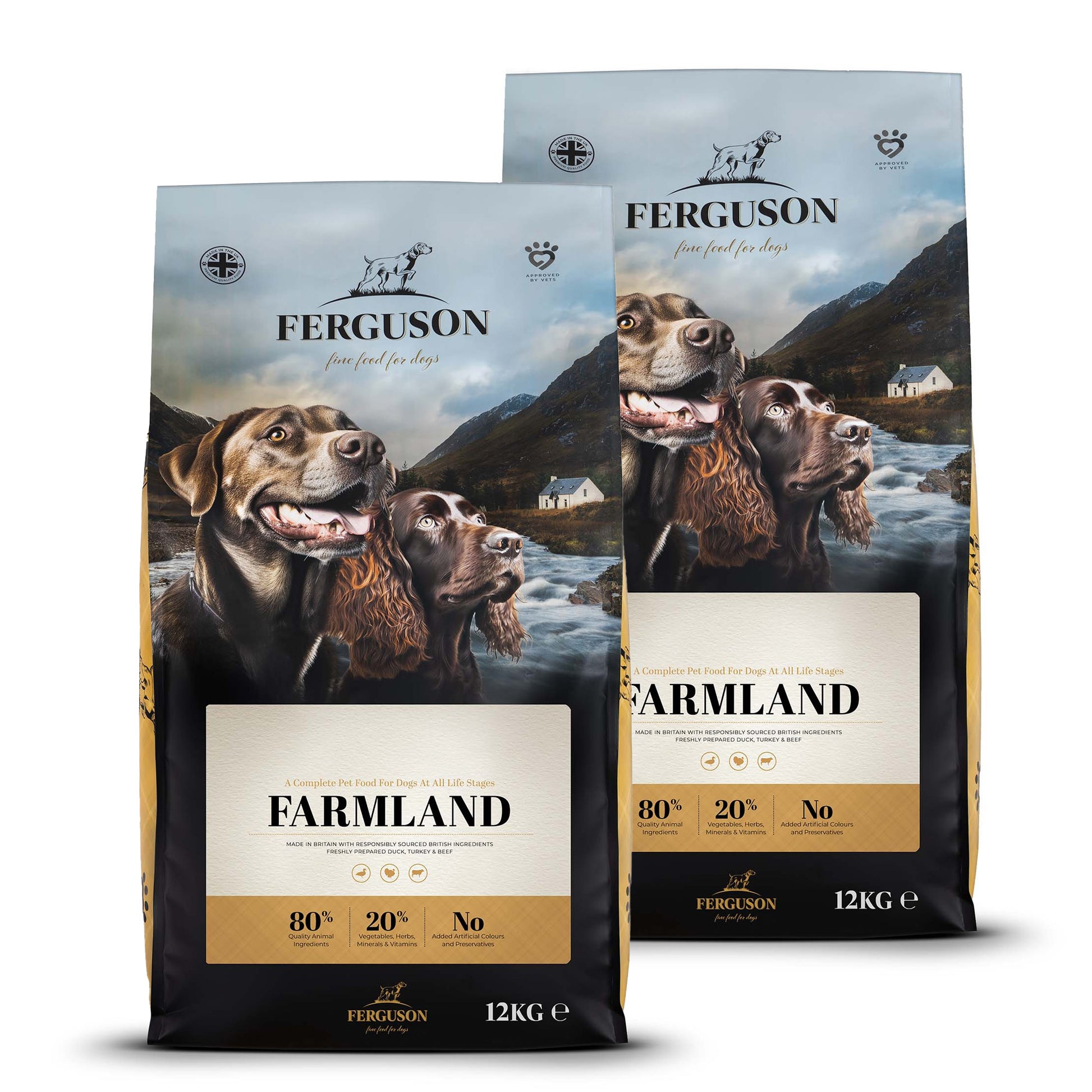 You can feel good about feeding your dog Ferguson Farmland 80/20 Grain Free Dry Dog Food, because it's made with the same thought and care that you would put into your own food.