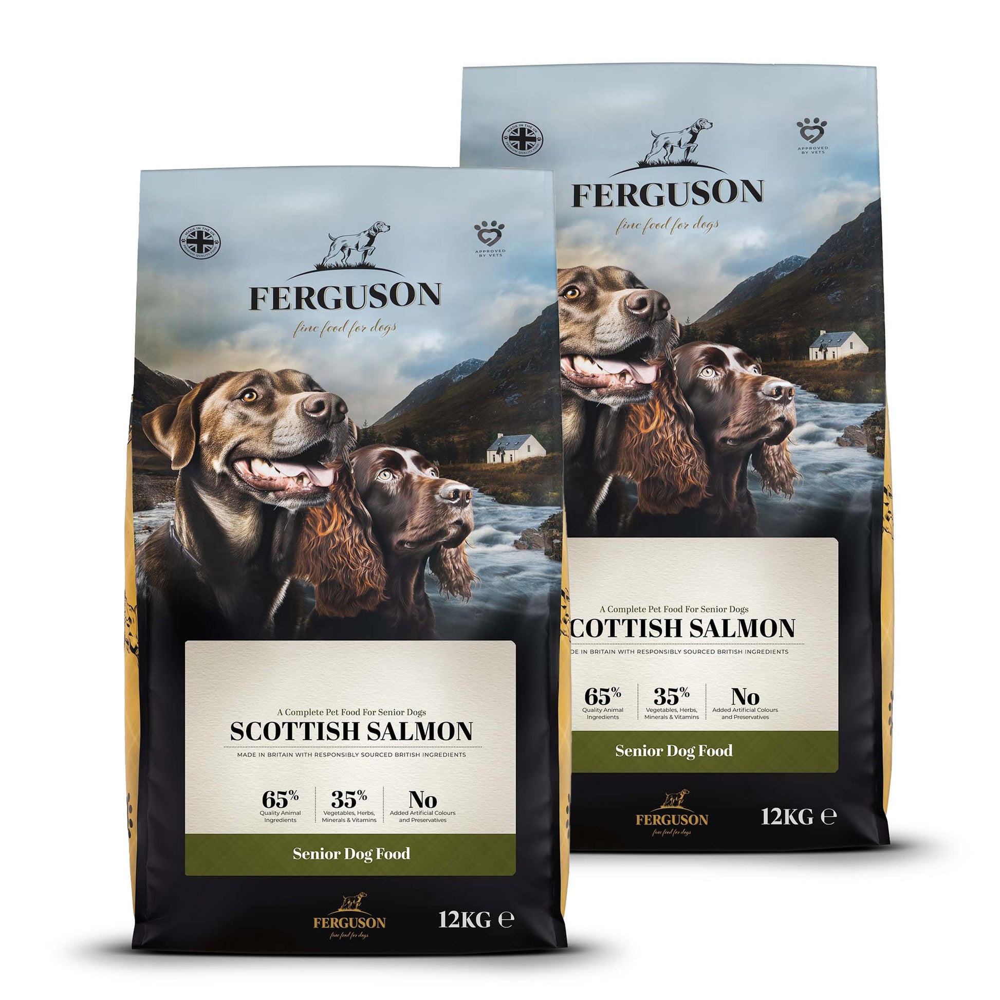 You can feel good about feeding your dog Ferguson Scottish Salmon Senior Dry Dog Food, because it's made with the same thought and care that you would put into your own food.
